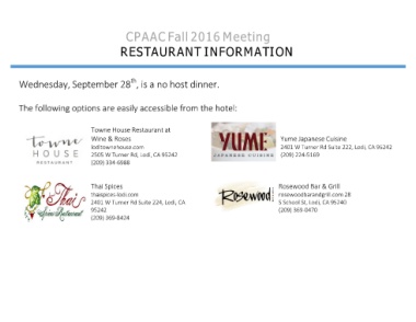 Wednesday, September 28th, is a no host dinner. Yume Japanese Cuisine