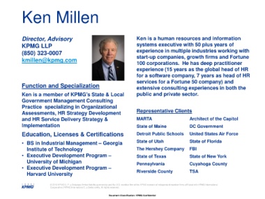 Ken is a member of KPMG’s State & Local services for a Fortune 50 company) and