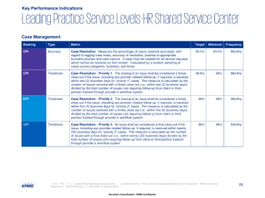 CPI Timeliness business process and case closure. A case must be created for all service requests 99.9% 99% Monthly