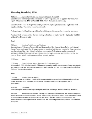 8:30 a.m. Approval of Minutes and Treasurer’s Report; Roundtable