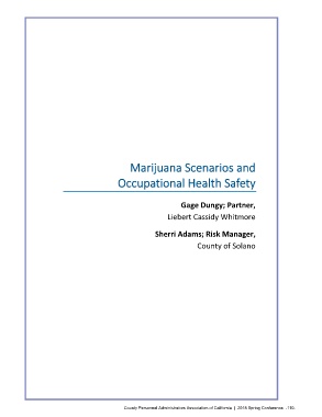Marijuana Scenarios and Occupational Health Safety Gage Dungy; Partner, Liebert Cassidy Whitmore Sherri Adams; Risk Manager, County of Solano County Personnel Administrators Association of California | 2018 Spring Conference -110-