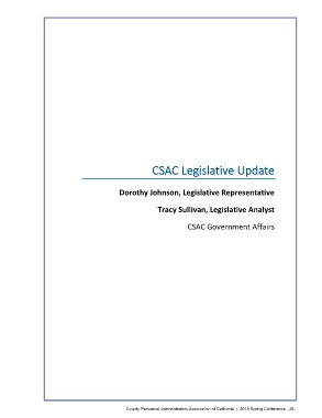 CSAC Legislative Update Dorothy Johnson, Legislative Representative Tracy Sullivan, Legislative Analyst CSAC Government Affairs County Personnel Administrators Association of California | 2018 Spring Conference -26-