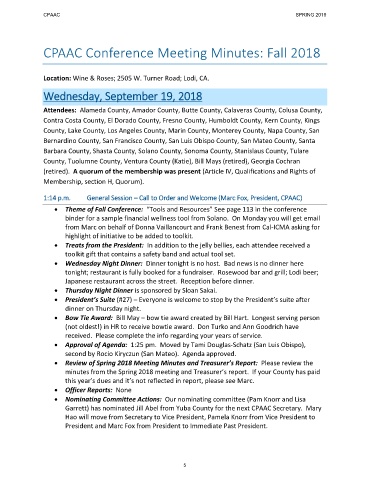 CPAAC Conference Meeting Minutes: Fall 2018