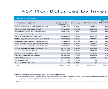 Asset Allocation Balances as of Per cen tag e* C o n tr i b u ti o n s Plan Ac