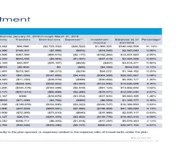 ti vi ty Tr an sfer s Distributions Expenses** Investm ent Balances as of Per cen tag e*