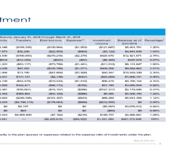 ti vi ty Tr an sfer s Distributions Expenses** Investm ent Balances as of Per cen tag e*