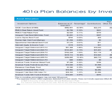 401a Plan Balances by Inve