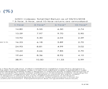 M SCI I ndexes: Total Net Return as of 03/31/2018