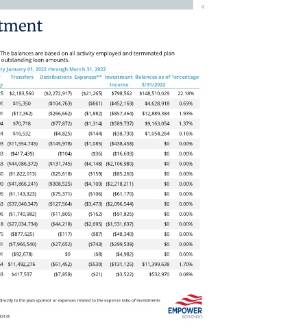 Investment Options Balances as of Percentage* Contribution Other Transfers Distributions Expenses** Investment Balances as of Percentage*