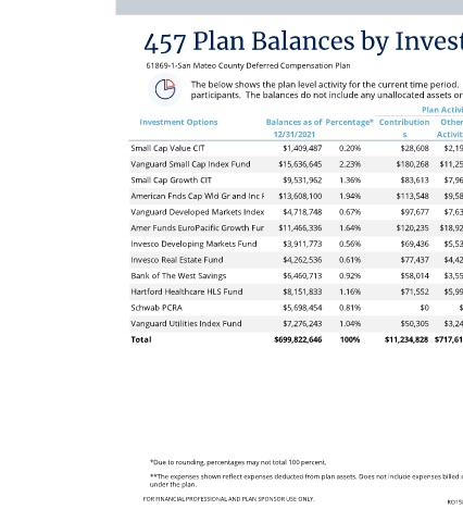 participants. The balances do not include any unallocated assets or outstanding loan amounts.
