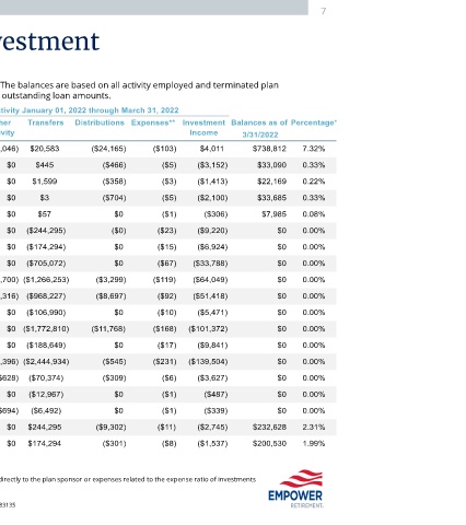 participants. The balances do not include any unallocated assets or outstanding loan amounts.