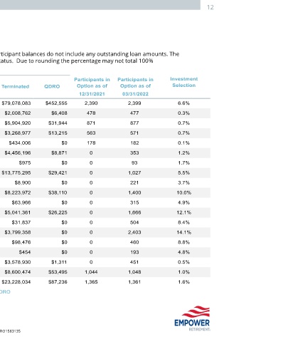 The balances reflected are based on plan participant status. The participant balances do not include any outstanding loan amounts. The
