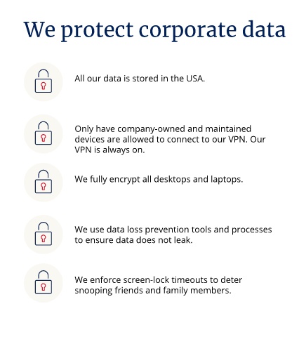 We enforce screen-lock timeouts to deter We block personal use sites like Google
