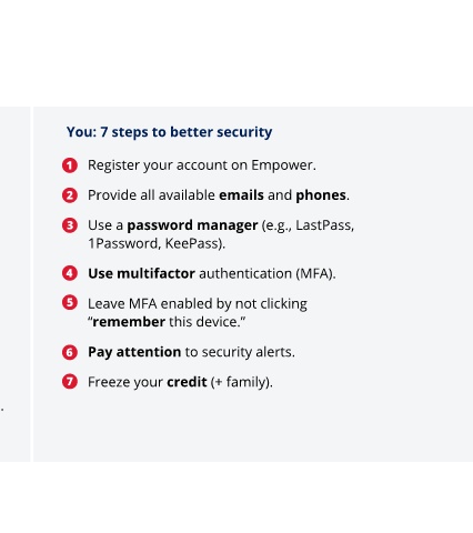 Use antivirus software and keep apps and software current. Freeze your credit (+ family).