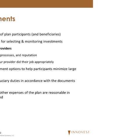 • Duty of Prudence: Establish a prudent process for selecting & monitoring investments