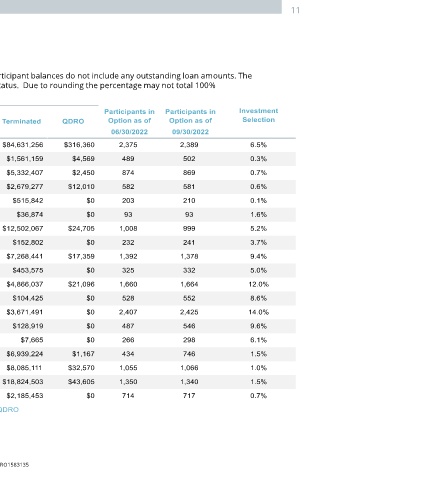 The balances reflected are based on plan participant status. The participant balances do not include any outstanding loan amounts. The