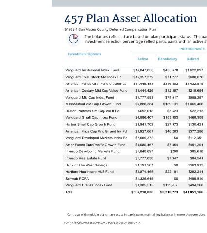 The balances reflected are based on plan participant status. The participant balances do not include any outstanding loan amounts. The