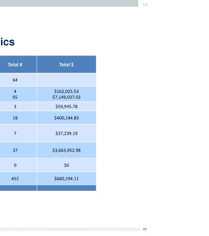 Activity Total # Total $