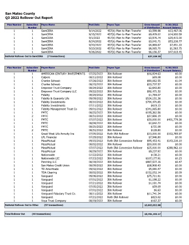1 1 SamCERA 9/20/2022 457(b) Plan to Plan Transfer $4,969.67 $7,451.33