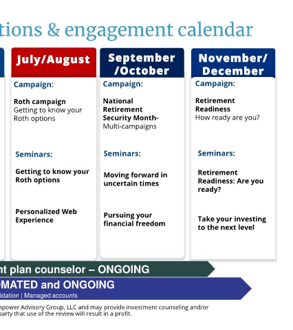 Retirement Readiness Reviews with retirement plan advisors –