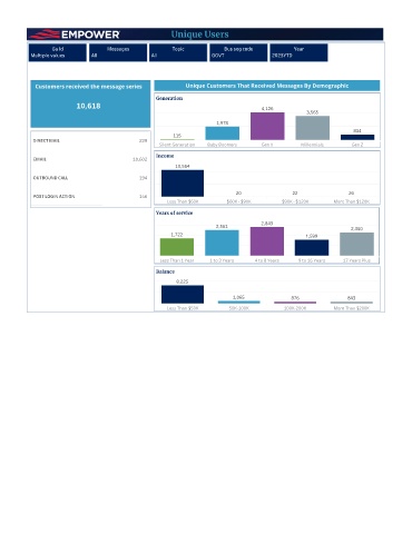 Customers received the message series Unique Customers That Received Messages By Demographic