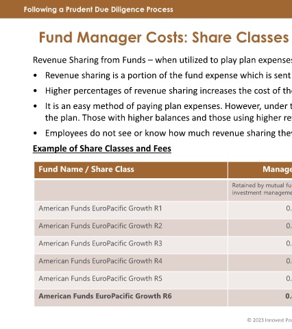 • Employees do not see or know how much revenue sharing they pay in each fund