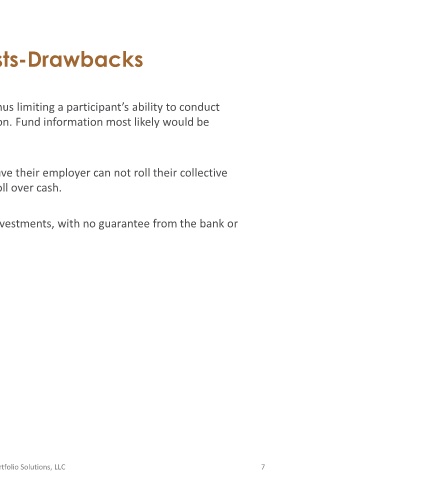 • Participants that are invested in CITs and then leave their employer can not roll their collective