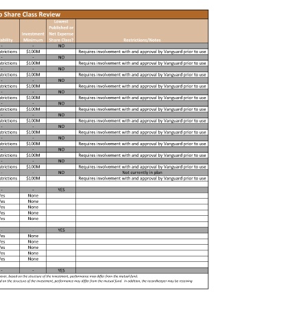 Restrictions/Notes Requires involvement with and approval by Vanguard prior to use Requires involvement with and approval by Vanguard prior to use Requires involvement with and approval by Vanguard prior to use Requires involvement with and approval by Vanguard prior to use Requires involvement with and approval by Vanguard prior to use Requires involvement with and approval by Vanguard prior to use Requires invol