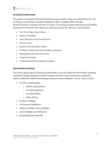 This session goes beyond Investing Fundamentals to provide additional information regarding