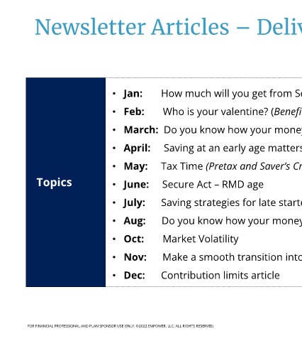 FOR FINANCIAL PROFESSIONAL AND PLAN SPONSOR USE ONLY. ©2022 EMPOWER, LLC. ALL RIGHTS RESERVED. FOR ILLUSTRATIVE PURPOSES ONLY