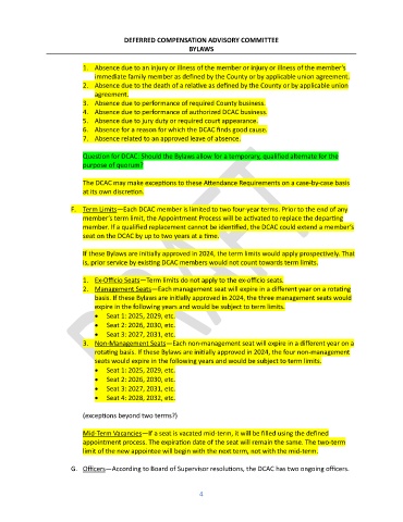 F. Term Limits—Each DCAC member is limited to two four-year terms. Prior to the end of any