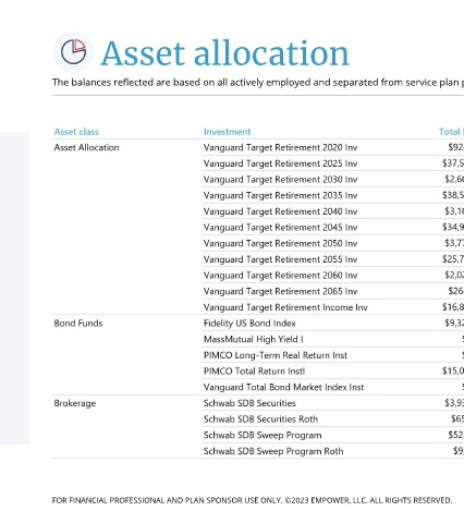 The balances reflected are based on all actively employed and separated from service plan participants. The participant balances do not include any outstanding loan amounts.