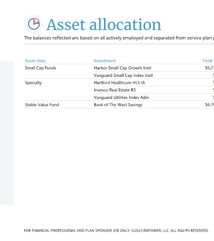 The balances reflected are based on all actively employed and separated from service plan participants. The participant balances do not include any outstanding loan amounts.