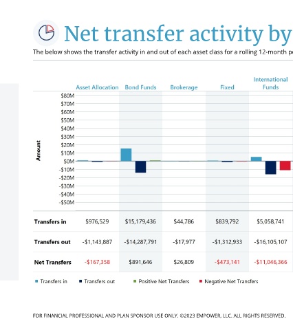 The below shows the transfer activity in and out of each asset class for a rolling 12-month period.