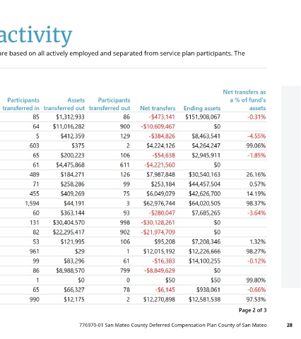 The below shows the transfer activity for a rolling 12-month period. The balances reflected are based on all actively employed and separated from service plan participants. The