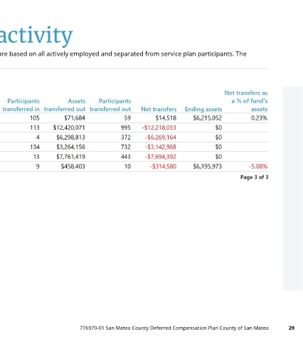 The below shows the transfer activity for a rolling 12-month period. The balances reflected are based on all actively employed and separated from service plan participants. The