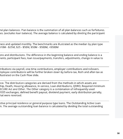 Total participant balance is the summation of all the participant balances. (excludes loan balance). The average balance is calculated by dividing the participant