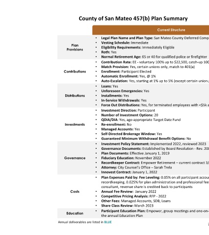 Plan Provisions Contributions Distributions Investments Governance Costs Education Annual deliverables are listed in BLUE