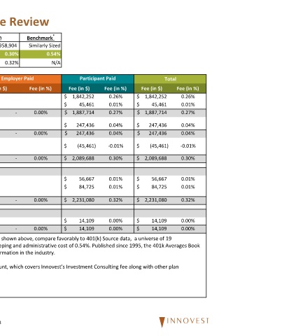 Plan Fee (in $) recordkeepers with similarly sized 401(k) plans, with an average investment, recordkeeping and administrative cost of 0.54%. Published since 1995, the 401k Averages Book 8