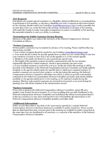 DEFERRED COMPENSATION ADVISORY COMMITTEE Agenda for May 25, 2023