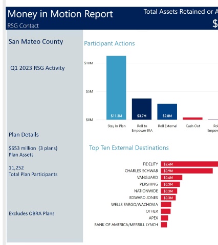 San Mateo County Q1 2023 RSG Activity Plan Details $653 million (3 plans) Plan Assets 11,252 Total Plan Participants Excludes OBRA Plans FOR FINANCIAL PROFESSIONAL AND PLAN SPONSOR USE ONLY. ©2023 EMPOWER, LLC. ALL RIGHTS RESERVED.