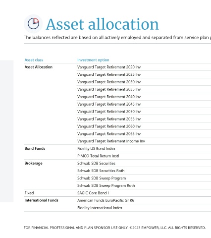 The balances reflected are based on all actively employed and separated from service plan participants. The participant balances do not include any outstanding loan amounts.