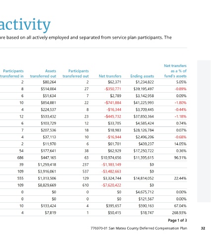 The below shows the transfer activity for a rolling 12-month period. The balances reflected are based on all actively employed and separated from service plan participants. The