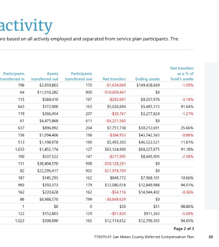 The below shows the transfer activity for a rolling 12-month period. The balances reflected are based on all actively employed and separated from service plan participants. The