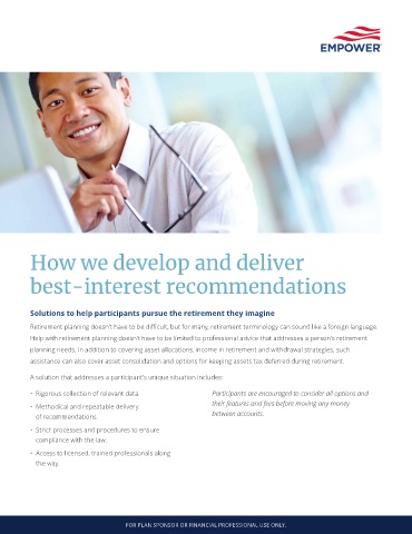 FOR PLAN SPONSOR OR FINANCIAL PROFESSIONAL USE ONLY.