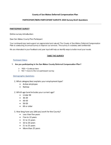 1. Are you participating in the San Mateo County Deferred Compensation Plan?