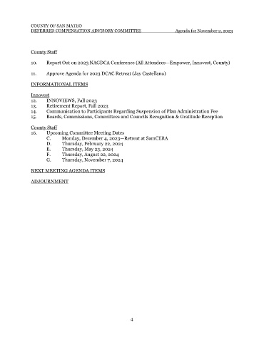 DEFERRED COMPENSATION ADVISORY COMMITTEE Agenda for November 2, 2023