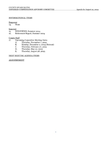 DEFERRED COMPENSATION ADVISORY COMMITTEE Agenda for August 22, 2024