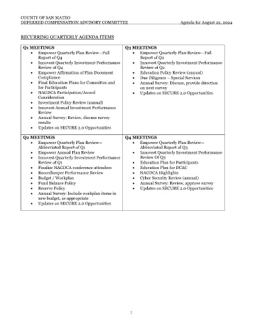 RECURRING QUARTERLY AGENDA ITEMS
