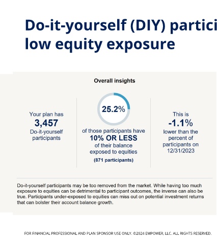 Do-it-yourself (DIY) participants with As of 6/30/2024 low equity exposure FOR FINANCIAL PROFESSIONAL AND PLAN SPONSOR USE ONLY. ©2024 EMPOWER, LLC. ALL RIGHTS RESERVED. 776970-01 San Mateo County Deferred Compensation Plan 27